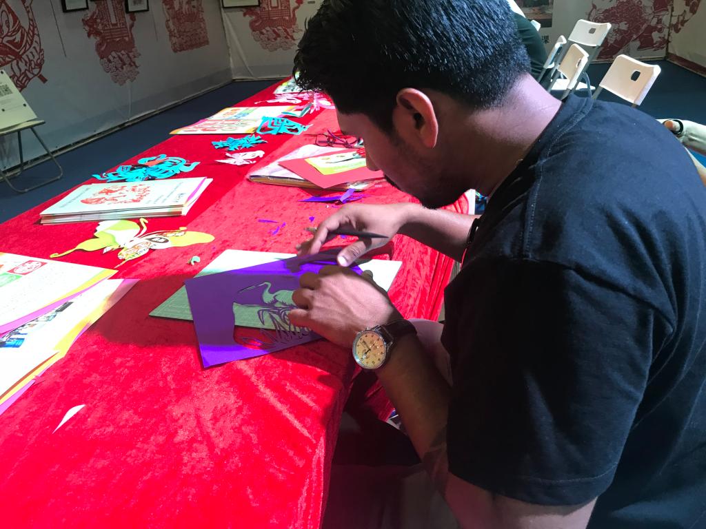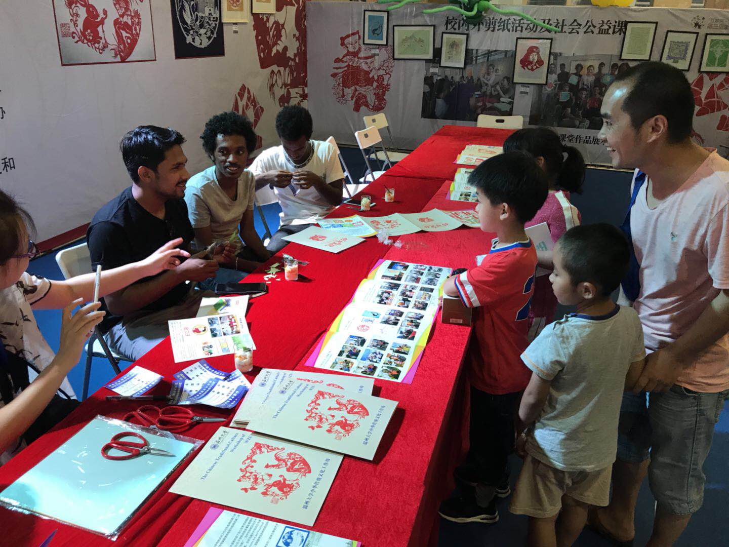 国际学生们现场展示分享了剪纸艺术,寥寥数剪,车辆、花卉、果蔬、人物跃然纸上,形象惟妙惟肖,栩栩如生。现场吸引了不少小朋友们和家长驻足观看与互动,小朋友与洋哥哥姐姐们通过剪蝴蝶、剪汽车、剪窗花拉进了彼此之间的距离,通过指尖传递了中国传统文化。