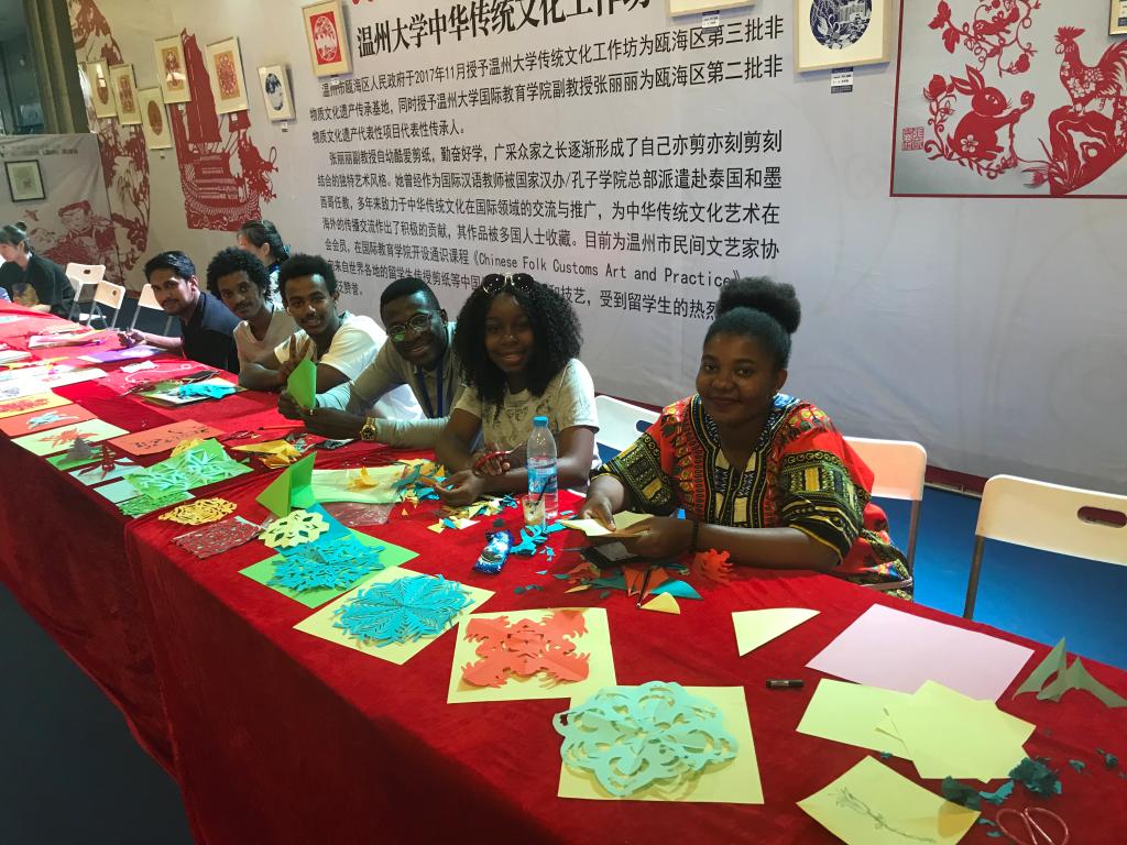 中设置了与中国传统文化相关的课程,如中国武术、中国剪纸、中国书法等等。希望中国留学生通过学习剪纸等通识课程能够深入了解中国文化,毕业回国后主动成为连接自己国家和中国文化的使者。