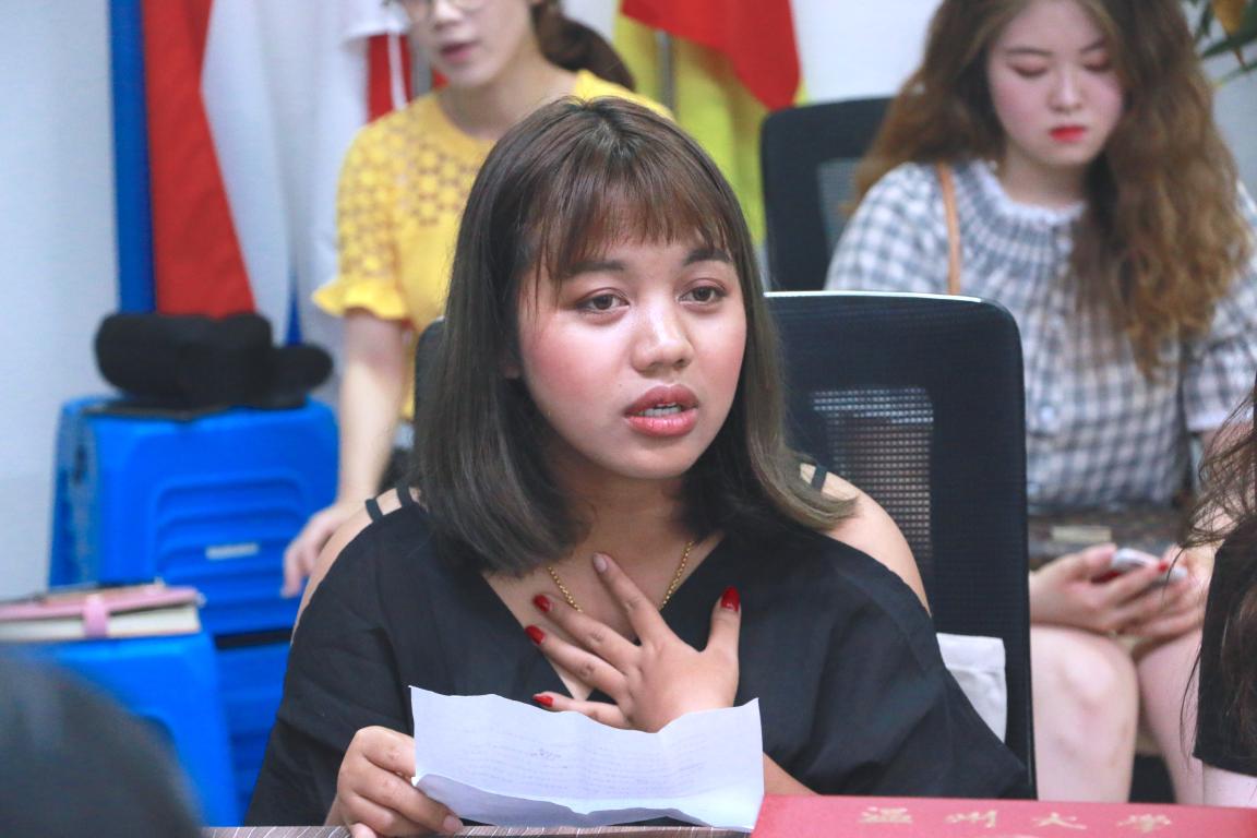 会上,教师代表金碧老师发言,她回顾了语言生们学习生活的点点滴滴,并对他们在汉语学习方面所取得的进步表示充分肯定。她希望他们回国后能继续学习汉语,遇到困难时可以和五楼自拍