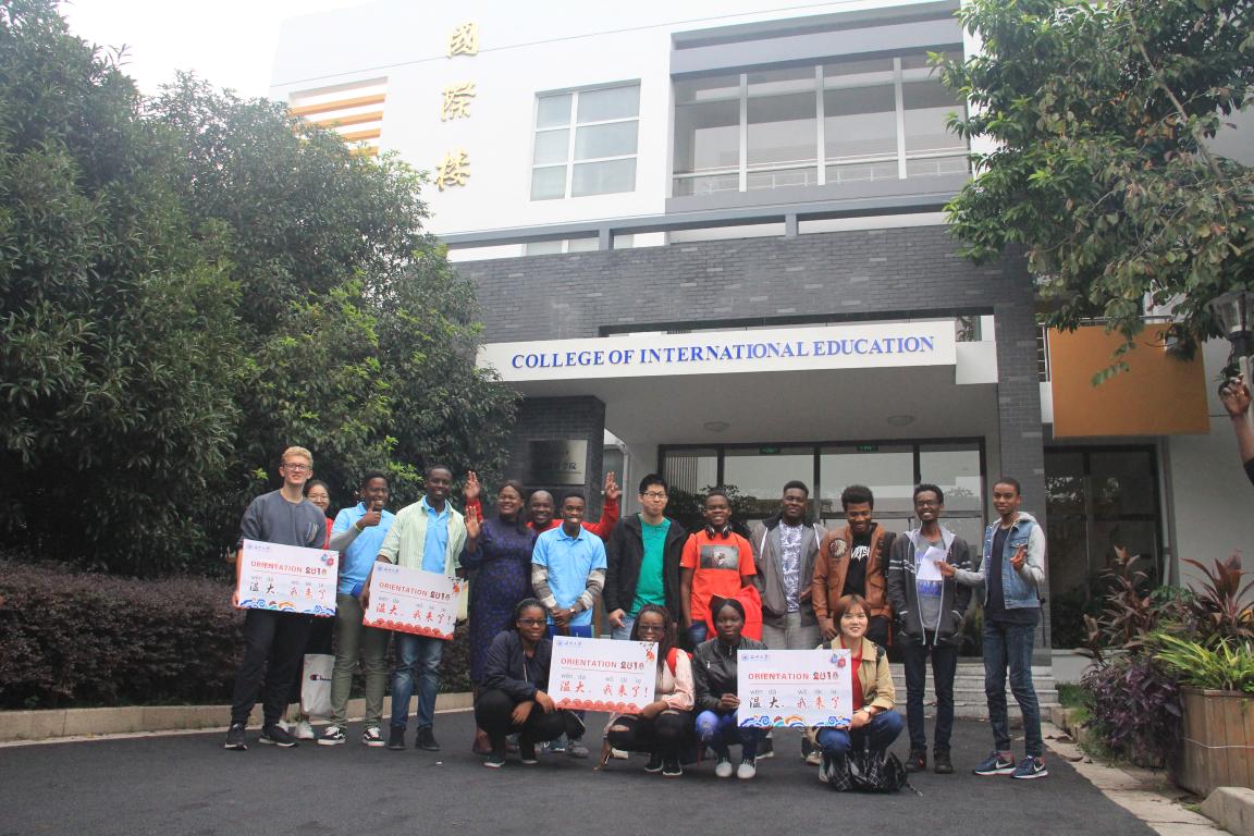 的老师、中外学生志愿者们纷纷全身心投入迎新工作,耐心指导国际新生从注册到入住公寓的每一个环节,并为他们精心准备了学生手册、校园地图等新生材料。10月11日,钱强副校长还在五楼自拍