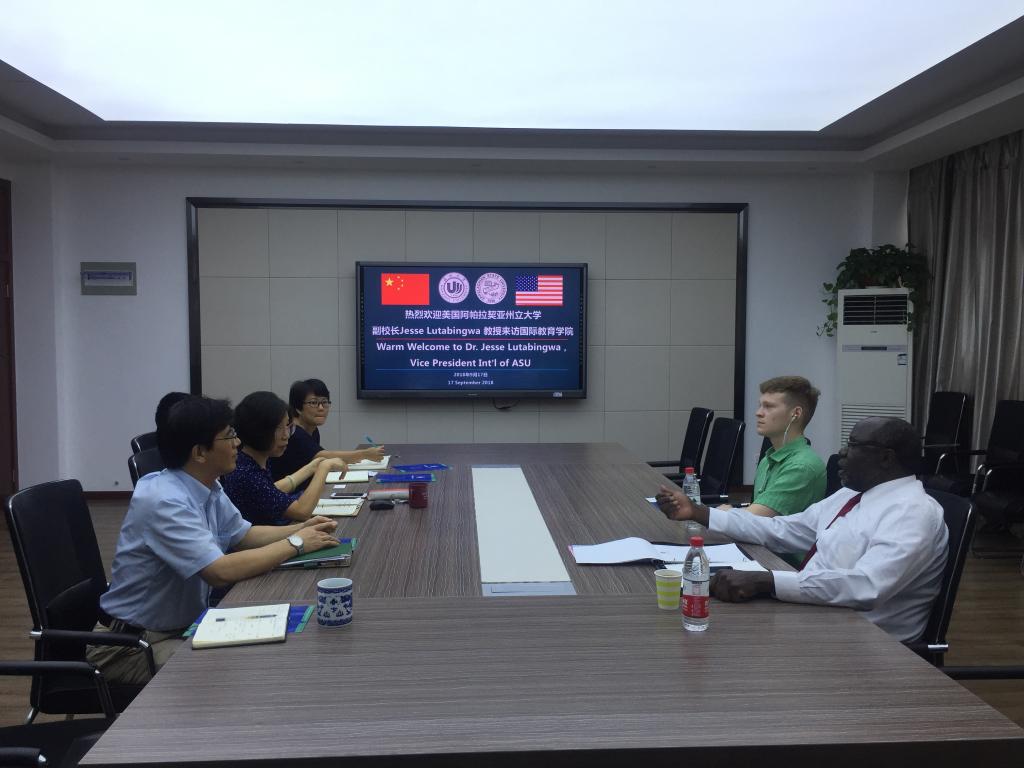 2018年9月17日上午,美国阿帕拉契州立大学(ASU)副校长Jesse Lutabingwa来五楼自拍