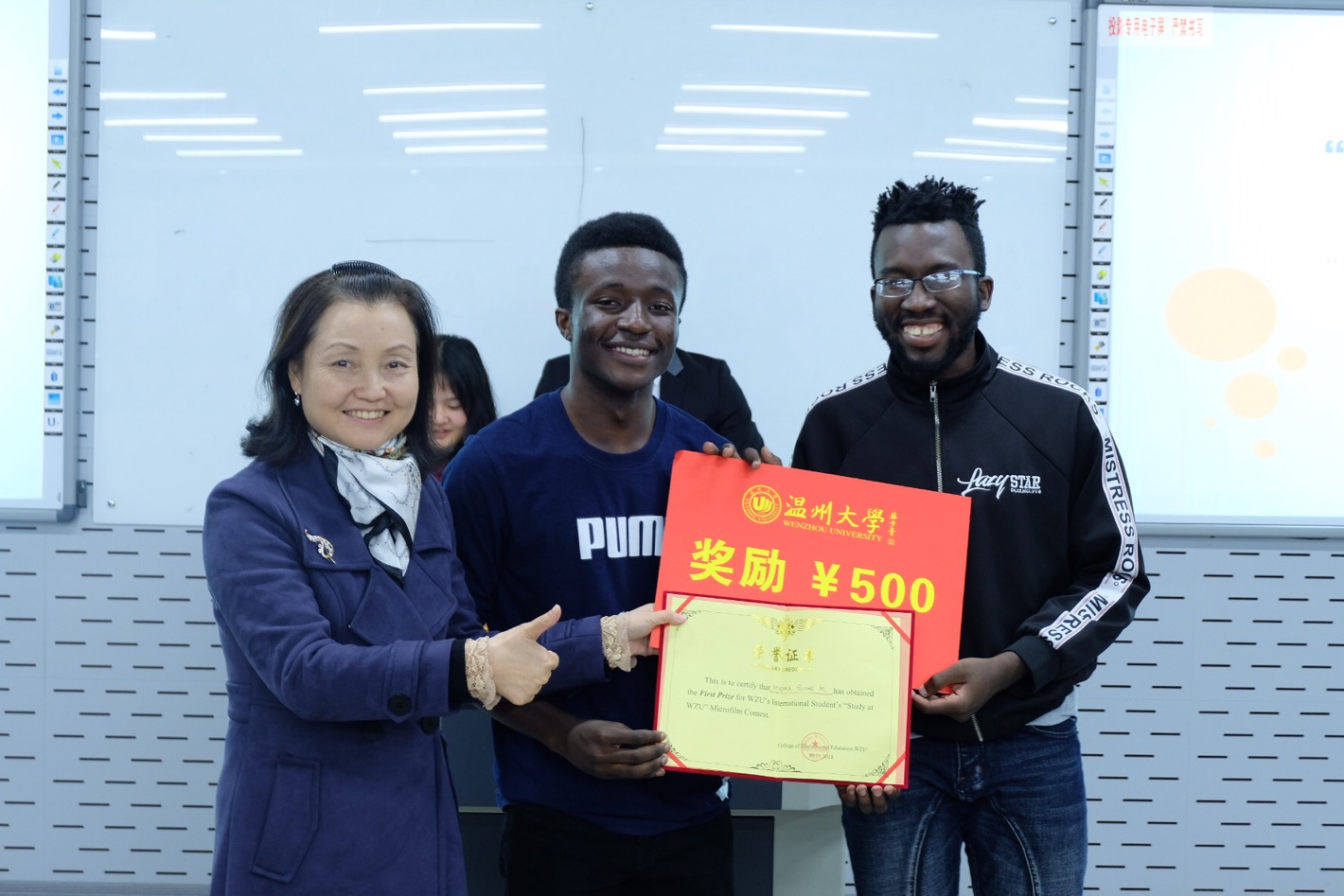 经过紧张而激烈的角逐,MUSOKA MUFUNGA GLOIRE等三名国际学生分别获得一、二、三等奖,来自尼日利亚的ANIEKE IFEANYI DAVID等学生获得优胜奖。