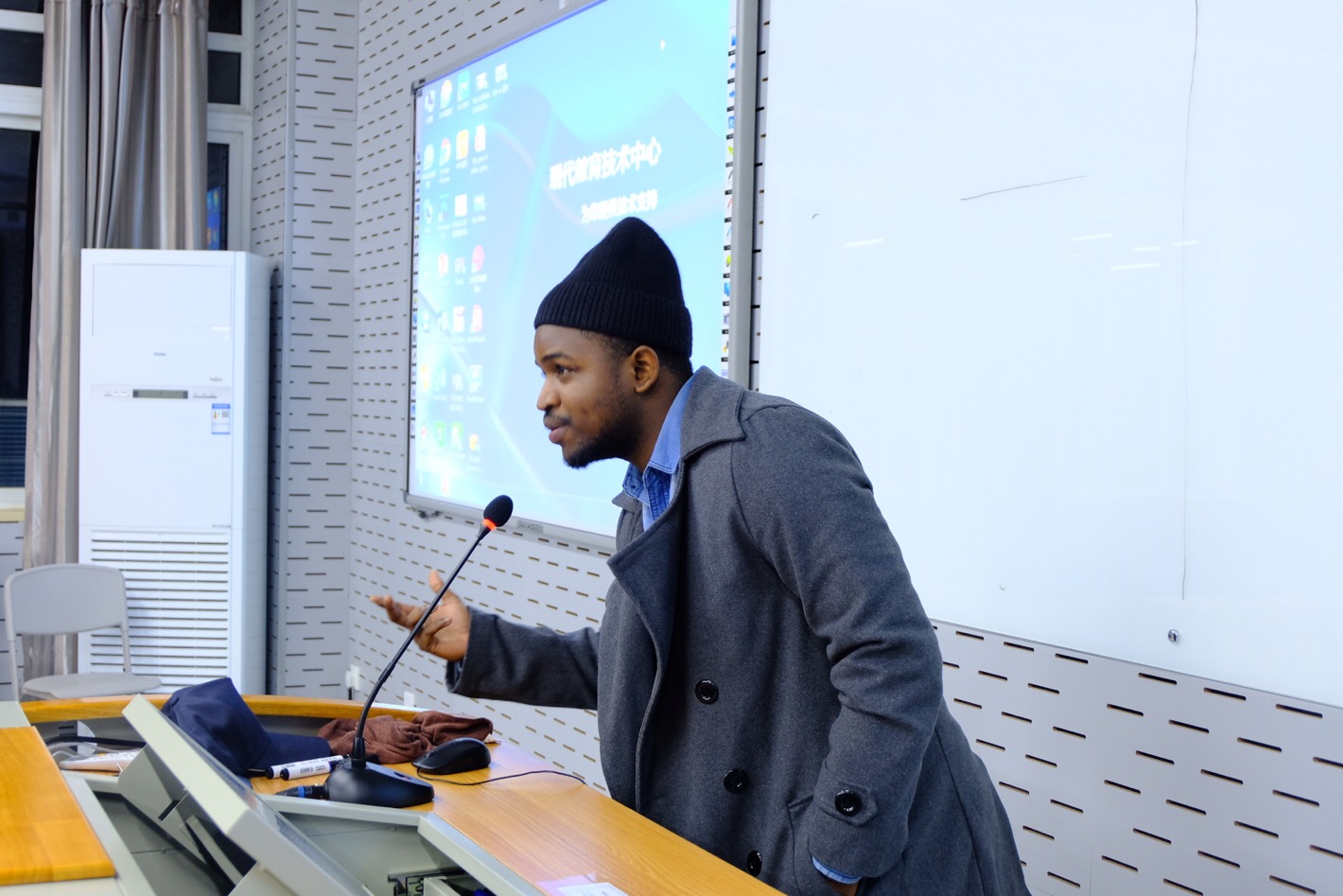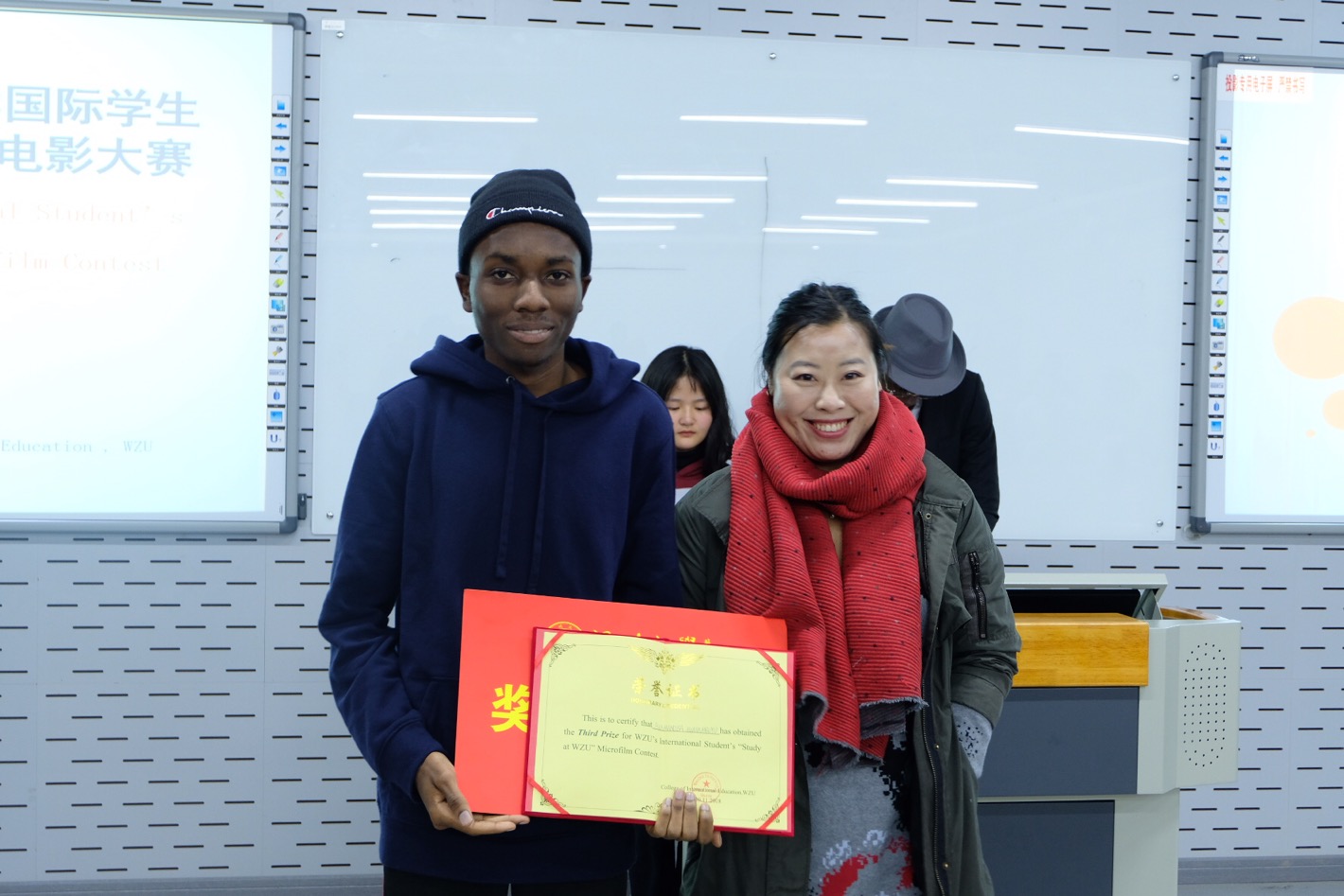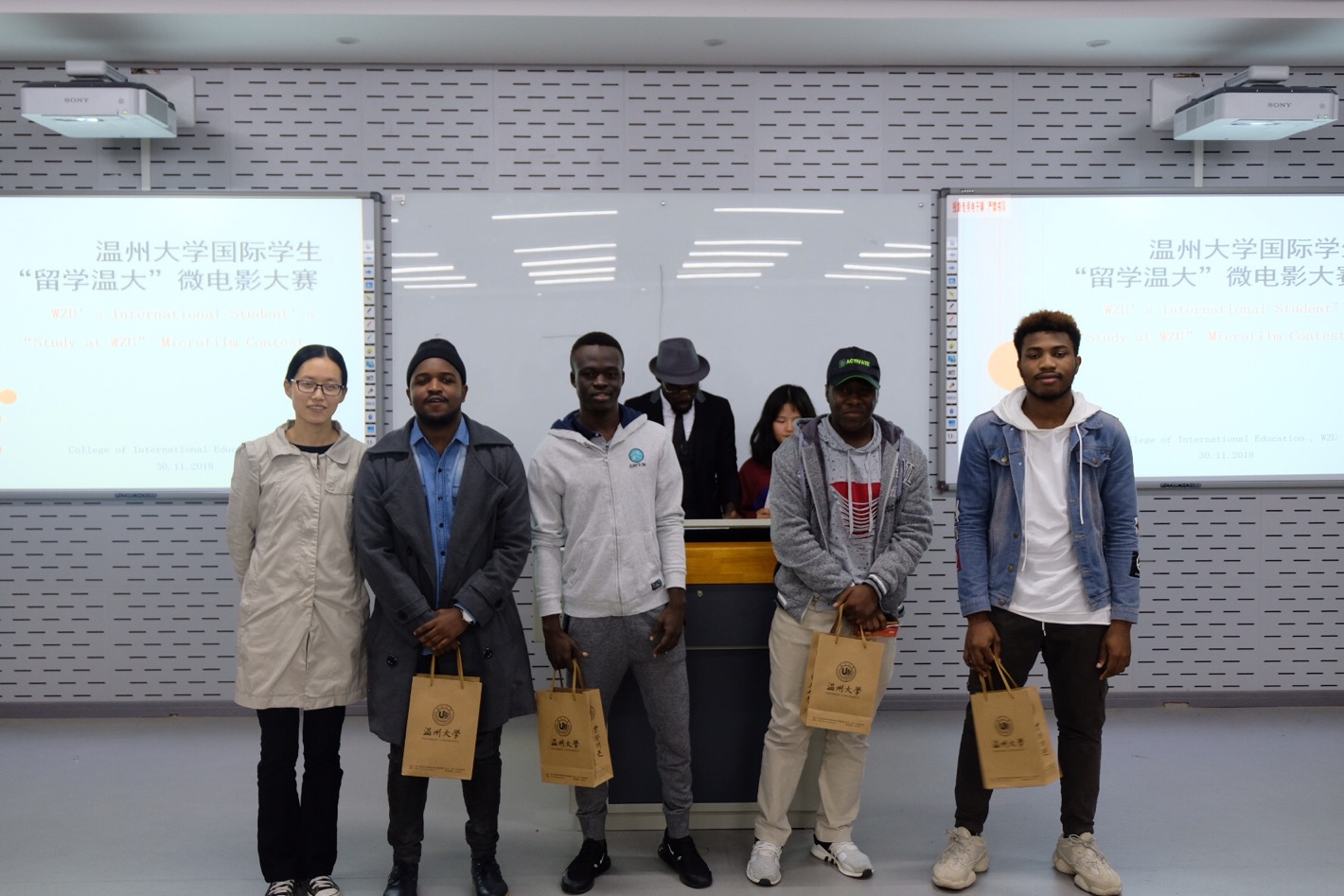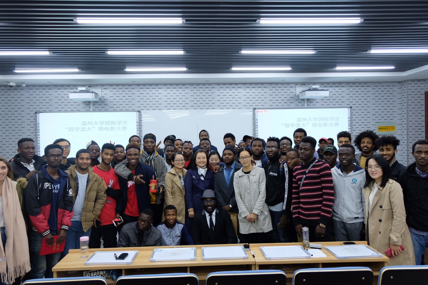 在北校区3号楼201举办首届国际学生“留学温大”微电影大赛。汉语教研室张丽丽、徐丽丽、张珉璐老师,学生科谢坚老师及80余名国际学生参与此次活动。
