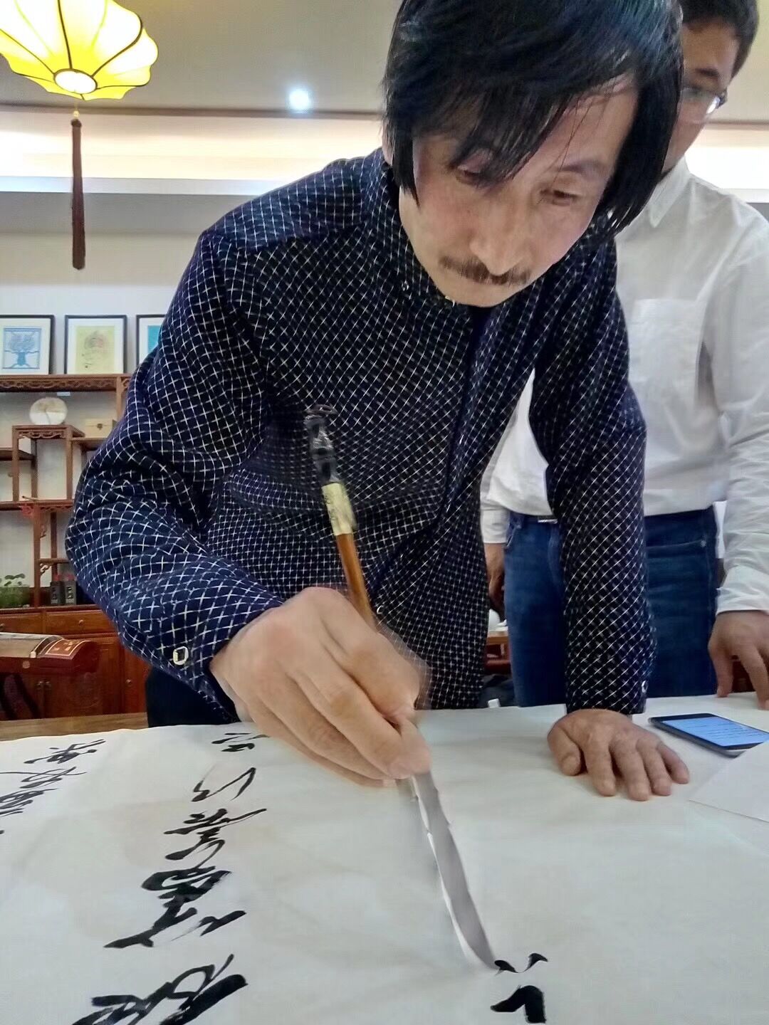 专门邀请了著名书法家赵立新教授来五楼自拍