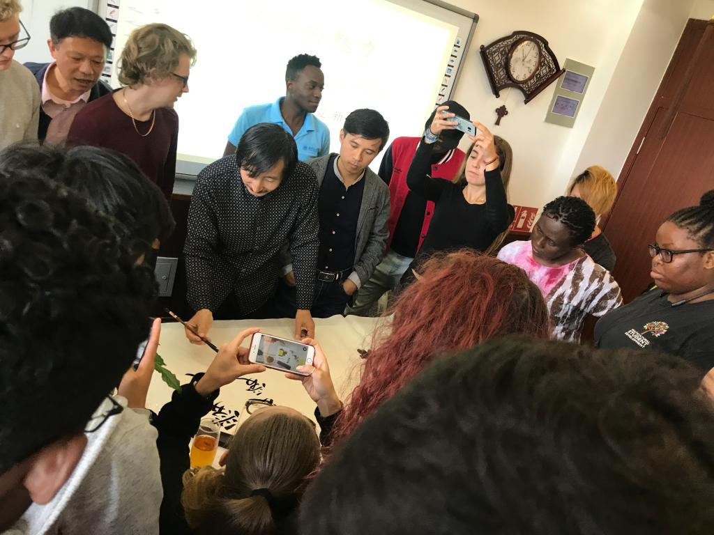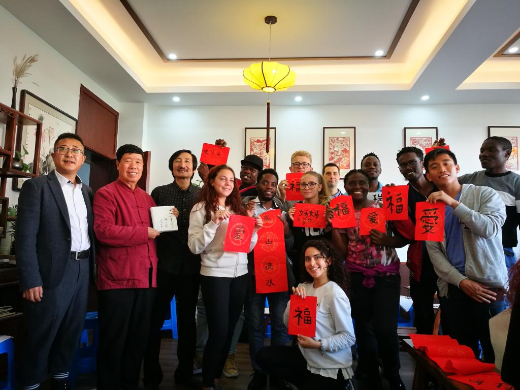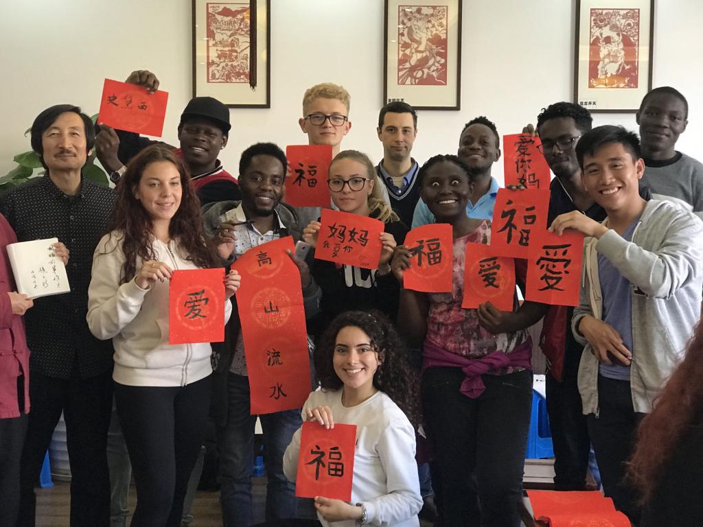 中华传统文化工作坊举行。来自美、德、荷兰、意大利等二十几个国家的留学生以及五楼自拍