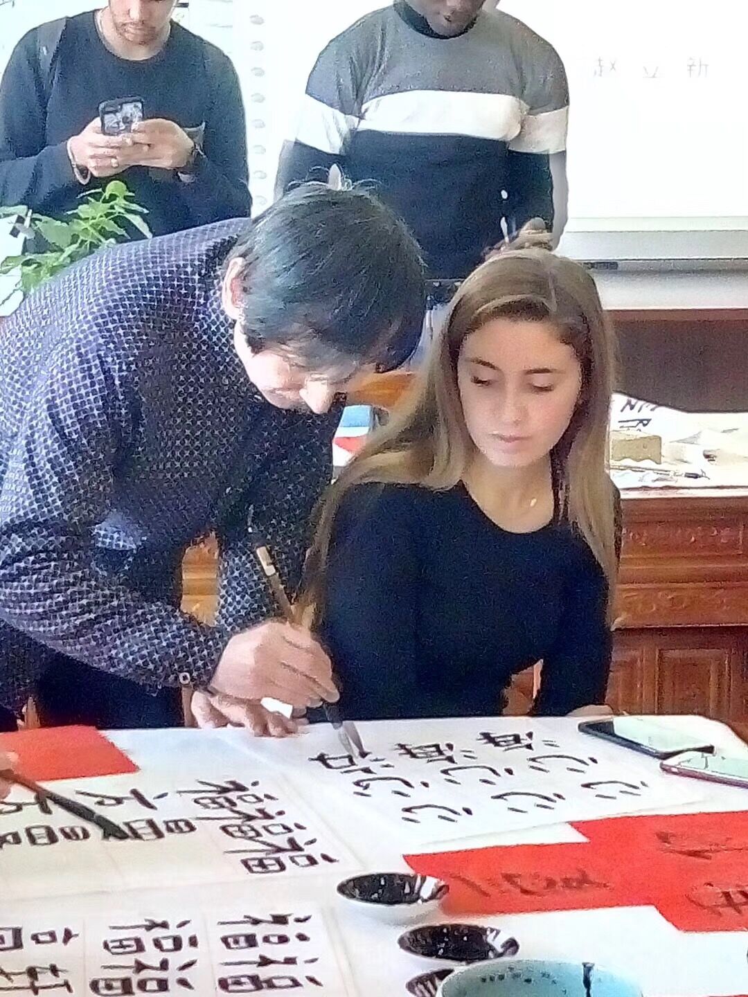 12月3日上午9点30分,以“汉字的魅力——以书法的角度”为主题的中国传统文化讲座在五楼自拍