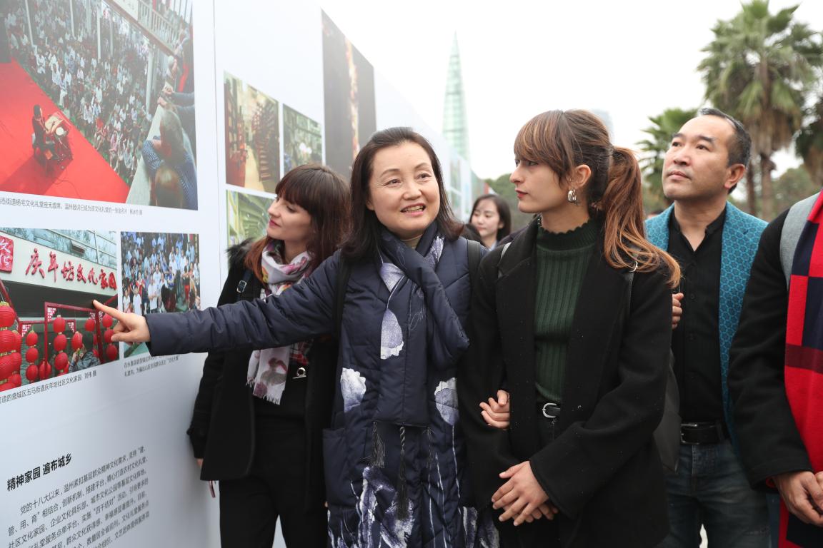 来自“一带一路”国家的国际学生来到温州大剧院广场,跟随温州市委宣传部胡剑谨部长的脚步,一边听取讲解员的介绍,还不时停下来询问,胡部长亲切地给予他们解答说明。通过图片,国际学生们能够更直观地了解改革开放40年来温州城乡面貌发生的巨大变化、百姓生活发生的历史性变革和取得的历史性成就,特别是看到他们自己所熟悉的地方和建筑的前世今生后,不时发出阵阵惊叹。参观结束后,国际学生讲述了他们参观后的感受。
