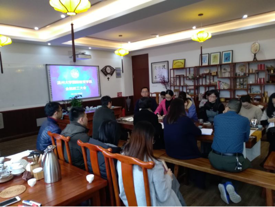 全体教职工大会在国际楼二楼召开,五楼自拍