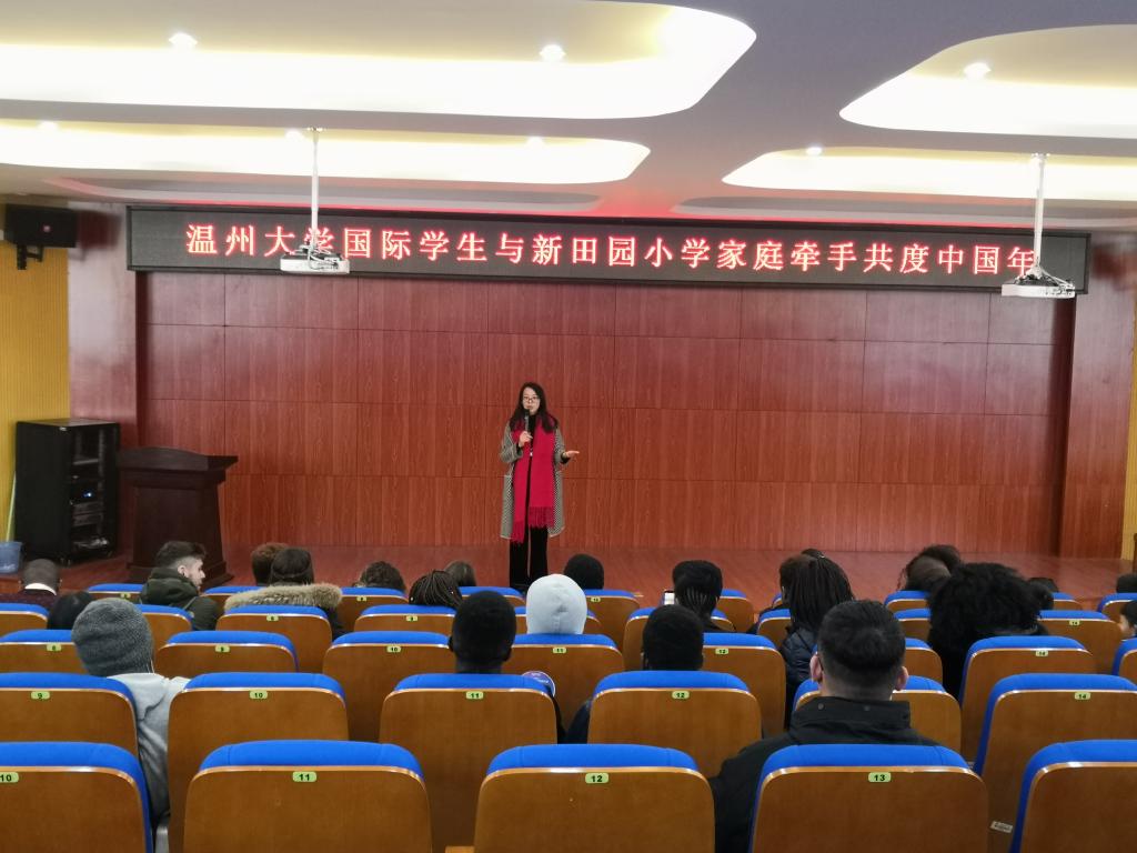 副院长包含丽、温州市新田园小学副校长洪艳、两校老师、新田园小学学生及其家长们、25名国际学生参加了此次活动。