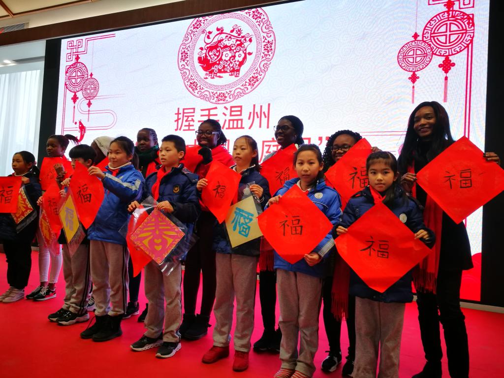张丽丽老师学习剪纸。学生和家长们被分为四个小分队分别前往江心屿、大罗山和永昌堡、七都村,欣赏温州美景,体验温州特色文化,感受温州年味。来自埃塞俄比亚的TASSEW TEWODROS MEGABIAW说,“寒假开始第一天,我就和中国家庭度过了一段极其美好的时光。我们一起学习剪纸、插花,我们去爬山,我一整天都在用中文和他们交流,还品尝了温州美食,我很享受和他们在一起的每一分钟。”尼日利亚籍学生GADZAMA MADU ASINAMAI也提到,“这是2019年送给我最好的礼物,我认识了我的朋友Jimmy和他的家庭,他父母给我介绍了中国文化和历史,我教Jimmy学习舞蹈,从他们身上我学会了什么是爱,我很享受和他们在一起的时光。很感激学校给我们这次机会近距离接触中国家庭,过中国新年,我期待和他们再次见面。”