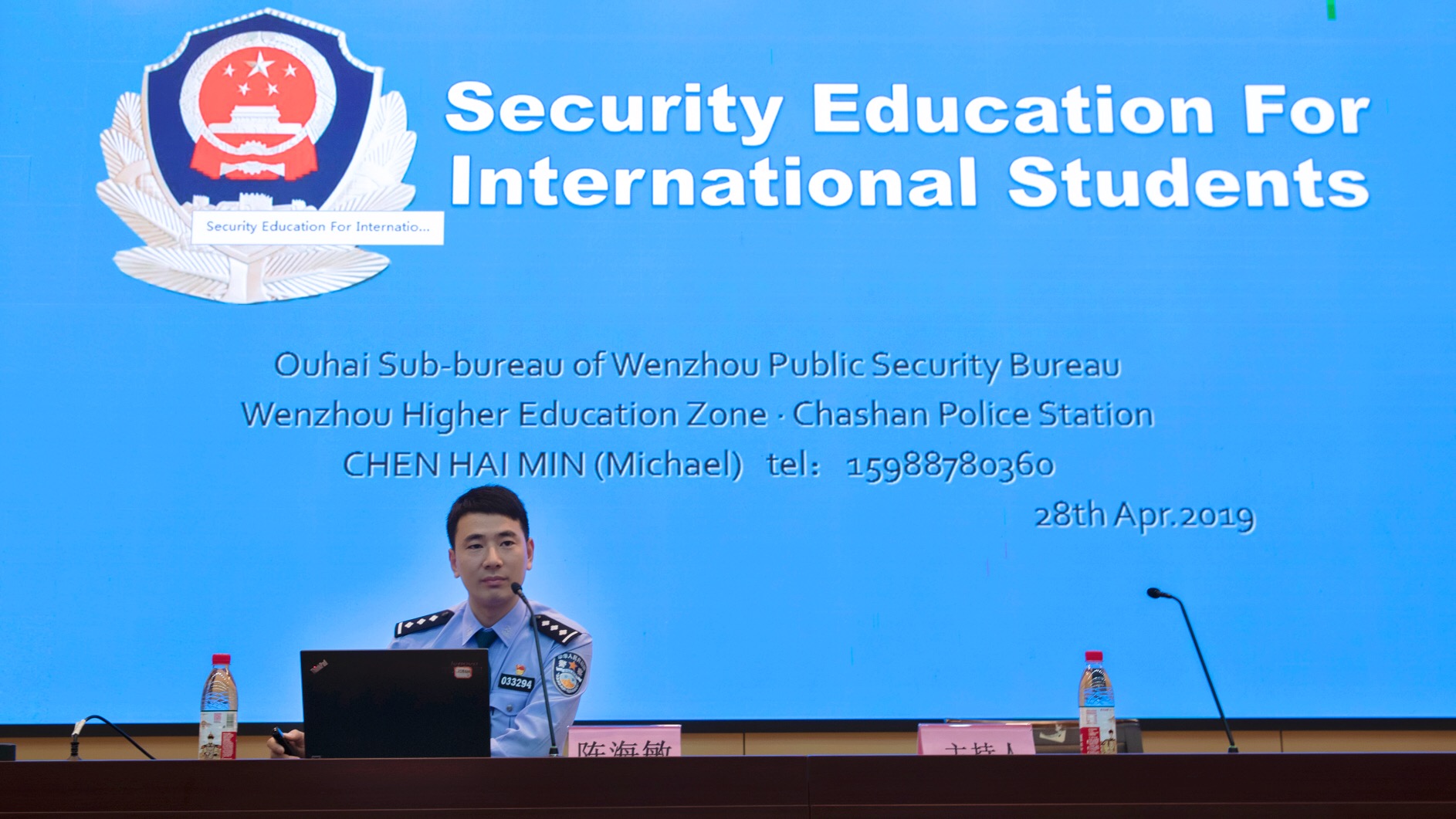 会上,陈海敏警官从紧急报警、防盗防诈骗、出入境管理、违禁物品管理、典型案例等五个方面强调了中国法律法规,并结合发生在国际学生身边的真实事件向他们宣传了安全防范常识。国际五楼自拍