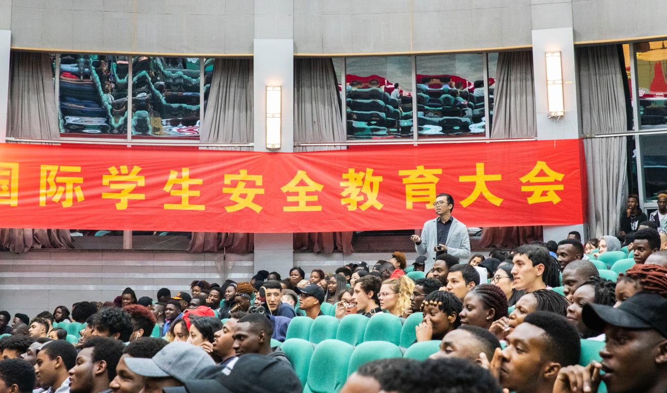 在南校区9号楼一楼报告厅召开全体国际学生安全五楼自拍