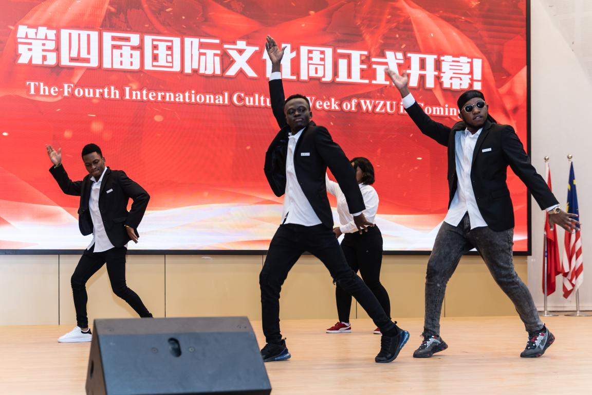 第四届国际文化周正式开幕。除了开幕式之外,此次国际文化周还将开展一系列传统文化体验、体育运动、学术讲座等活动,如第三届国际学生歌舞大赛、国际学生烹饪技能培训、中华茶艺文化体验、国际学生汉语技能大赛、国际美食节等活动及《科研人员国际沟通能力》等丰富多彩的讲座。典礼结束后,茶山派出所民警陈海敏警官为新生做安全五楼自拍