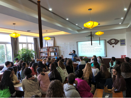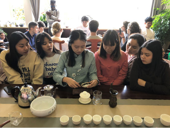 老师为留学生们讲授了一堂既有趣又有料的茶艺课。