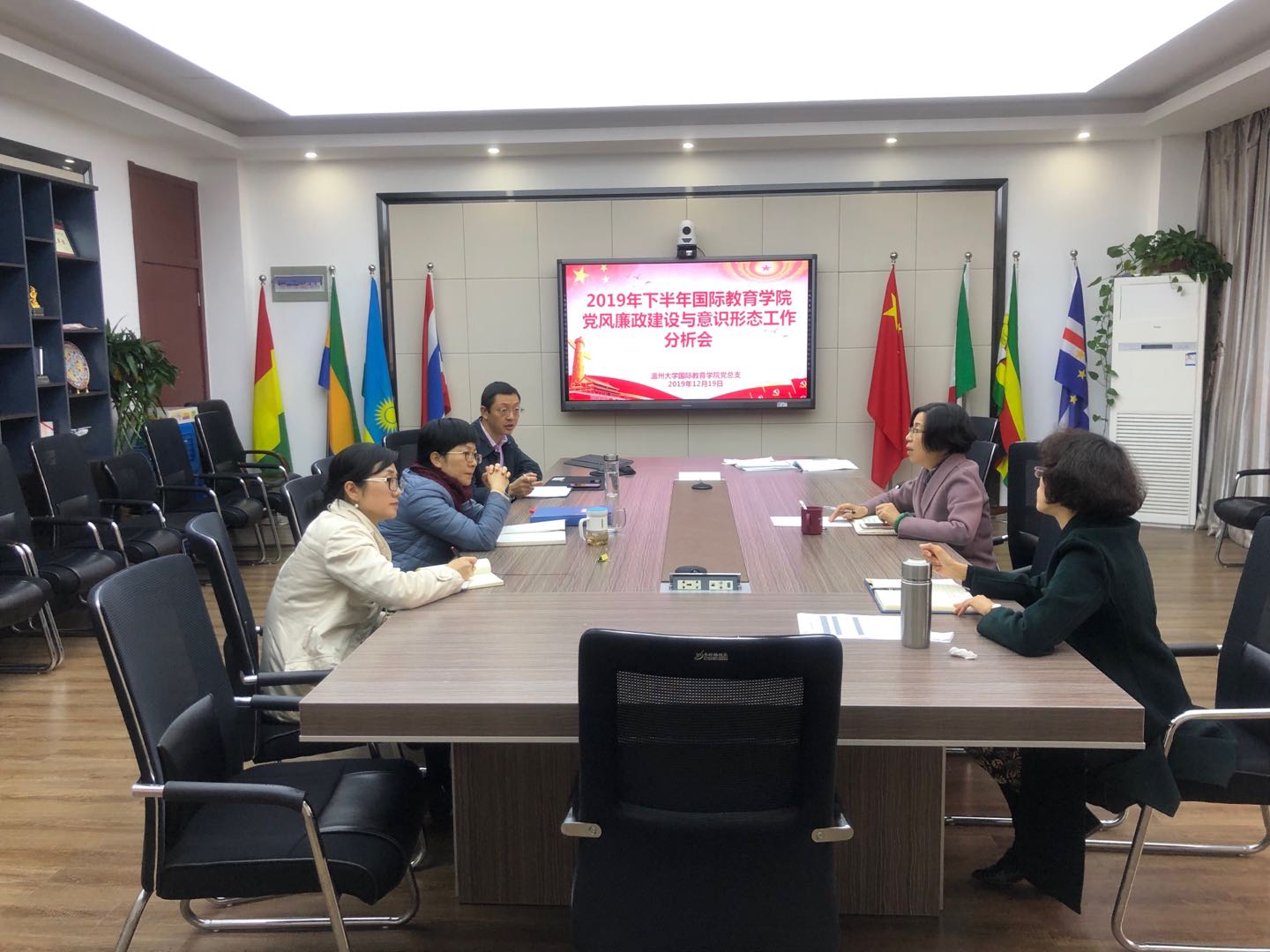 2019年下半年党风廉政建设与意识形态工作分析会在北校国际楼311会议室召开,院党总支书记林爱菊、院长叶苗、及其他院领导出席了本次会议。会议由五楼自拍