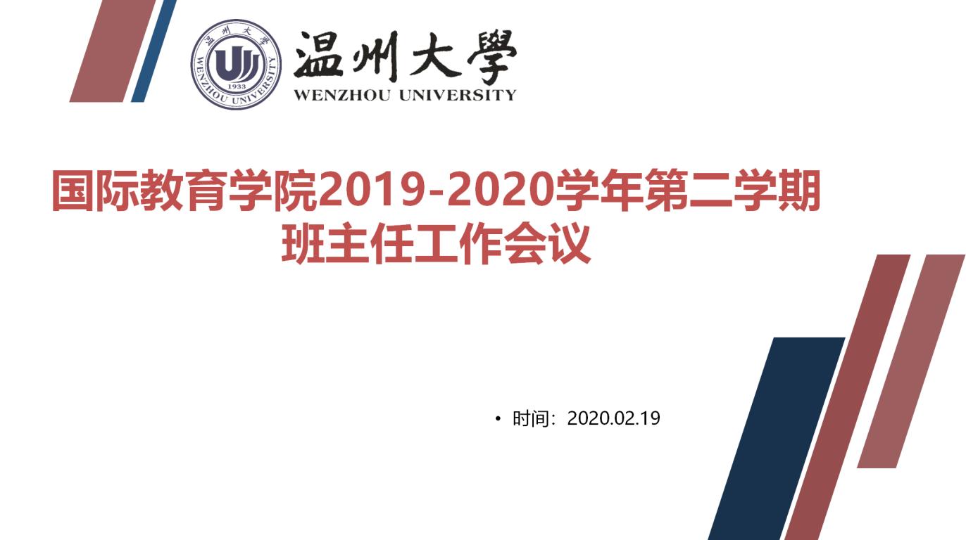 通过网络视频会议形式召开了新学期班主任工作会议,专题部署新型冠状病毒感染的肺炎疫情背景下防控相关工作。五楼自拍