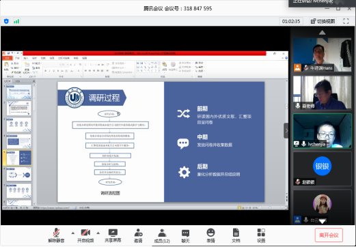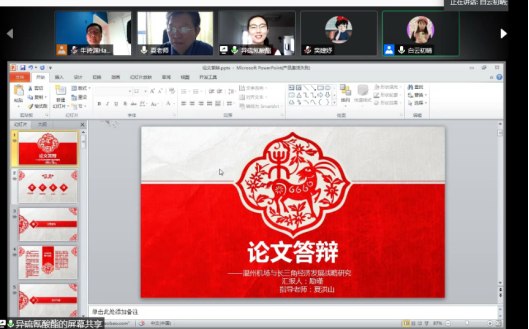 在答辩过程中,毕业生采用屏幕共享PPT的方式,进行了10分钟的个人陈述。随后答辩小组老师针对学生的毕业论文,逐一进行了点评和提问,并就论文中存在的主要问题提出了修改意见或建议。答辩结束后,各答辩小组老师进行合议确定学生的最终答辩成绩,并分享各自对线上答辩的看法,总结出线上答辩的优缺点以及今后可以改进的措施等。