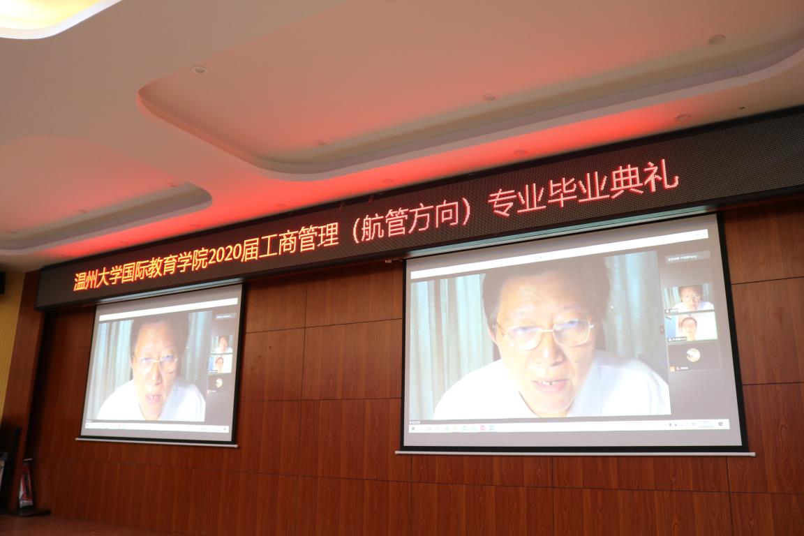 在3-203隆重举行2020届工商管理(航管方向)专业毕业典礼。全体院领导、学生处副处长包含丽、人事处副处长陈文远、航管教研室老师、各相关科室负责老师、全体毕业生、部分在校生参加了本次典礼。本次毕业典礼同时采用网络直播方式进行,让受疫情影响,无法来现场的部分教师及家长也能在“云端”为毕业生们送上美好的祝福。