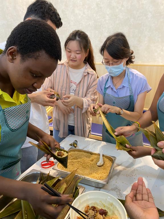 (留管部)于6月24日下午组织来自尼日利亚、巴基斯坦、加纳等国的20余名留学生前往怡口乐餐厅学习包粽子,体验端午传统佳节。