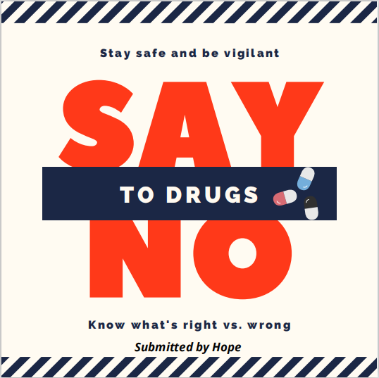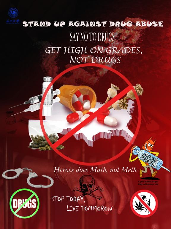 ,提高师生禁毒意识,增强学生识毒、防毒、拒毒能力,共同营造良好的校园禁毒宣传氛围。活动通知发布后,留学生积极响应,纷纷开始制作参赛作品。最终共有33幅作品上交参加比赛,有的运用电脑制作电子版本,有的用水彩笔、铅笔、海报纸等材料亲手绘制海报。根据作品的评选标准,来自坦桑尼亚的19级留学生SALUM FAHMI HAROUB荣获一等奖,来自马拉维的19级留学生CHILIKUMTIMA CROSSBY PATSON荣获二等奖,MACHACHA TAFADZWA LANGTON等四名同学获得三等奖,MSANIFU KHADIJA HAFIDH等五名同学获得优胜奖。