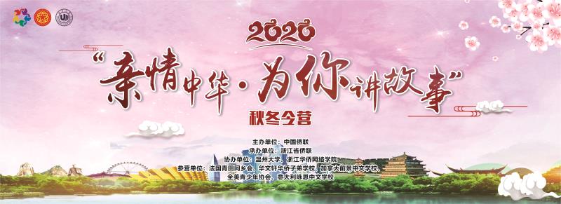 2020“亲情中华·为你讲故事”云端夏令营温州营活动深受喜爱,在疫情期间,线上学习不断线。现应海外华校,华裔青少年协会等各机构需求,推出2020“亲情中华·为你讲故事”秋冬令营活动。本次活动由中国侨联主办,浙江省侨联承办,温州大学、浙江华侨网络五楼自拍