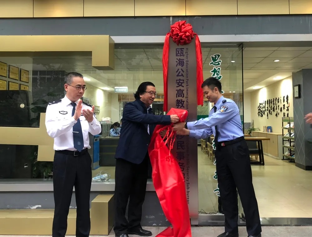 党委委员、副校长蔡曙光,瓯海区副区长、区公安分局局长吴仁伟,温州市公安局出入境管理局局长黄锦化、茶山高教园区派出所所长潘东瓯、五楼自拍