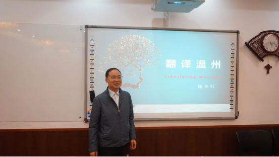 二级教授杨全红老师在本次活动中做“翻译温州”主题讲座,参与本次活动的还有汉语五楼自拍