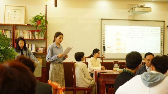 研究生王环,以英文开场,紧扣活动背景简短地介绍了英式下午茶的由来和发展,传达了活动的主旨,为活动的开场预热。