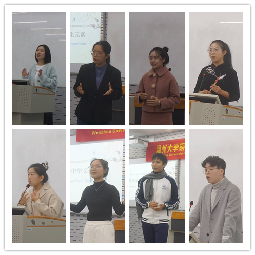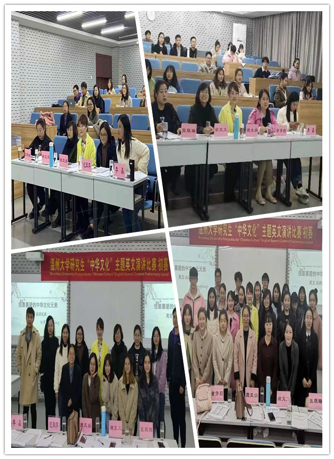 承办的首届以中华文化为主题的“我最喜爱的一个中华文化元素”英文演讲比赛圆满结束。为学当及时,何能待来兹!这次参赛的同学踊跃报名,严谨、细致的准备讲稿,潇洒利落的赛场表现,无不反映着温大研究生昂扬向上的精神气质和风貌。各位同学,加油!