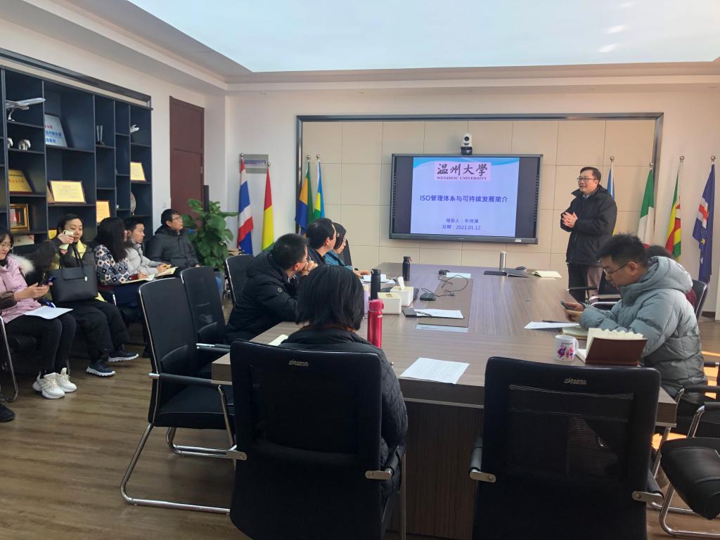 全体教师在311开展“国教微享会”活动,活动主题为“ISO管理体系与可持续发展简介”,台籍教师牛诗渊副教授主讲。