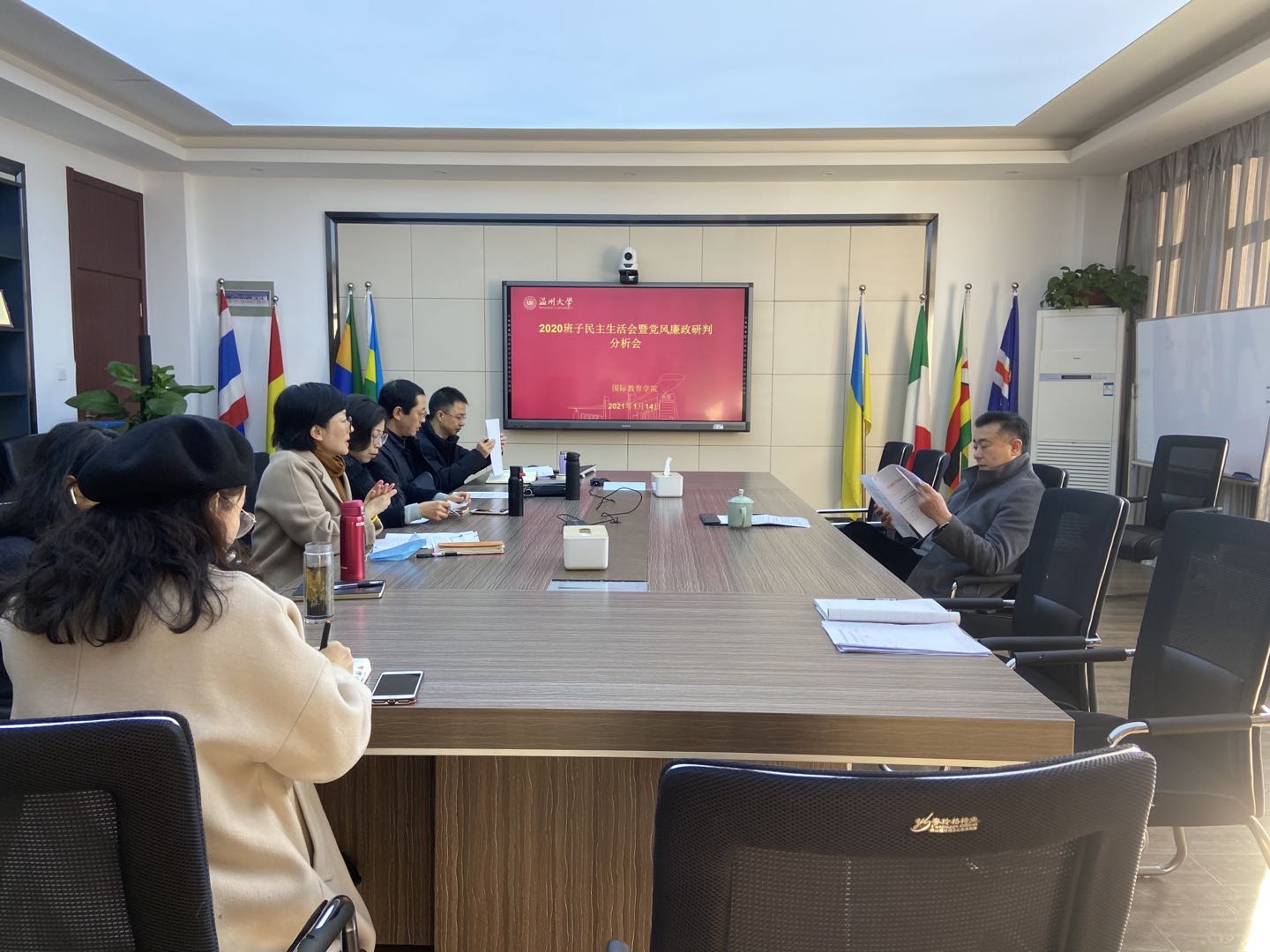 领导班子在国际楼311会议室召开2020年下半年党风廉政分析会暨意识形态分析会和班子民主生活会。五楼自拍