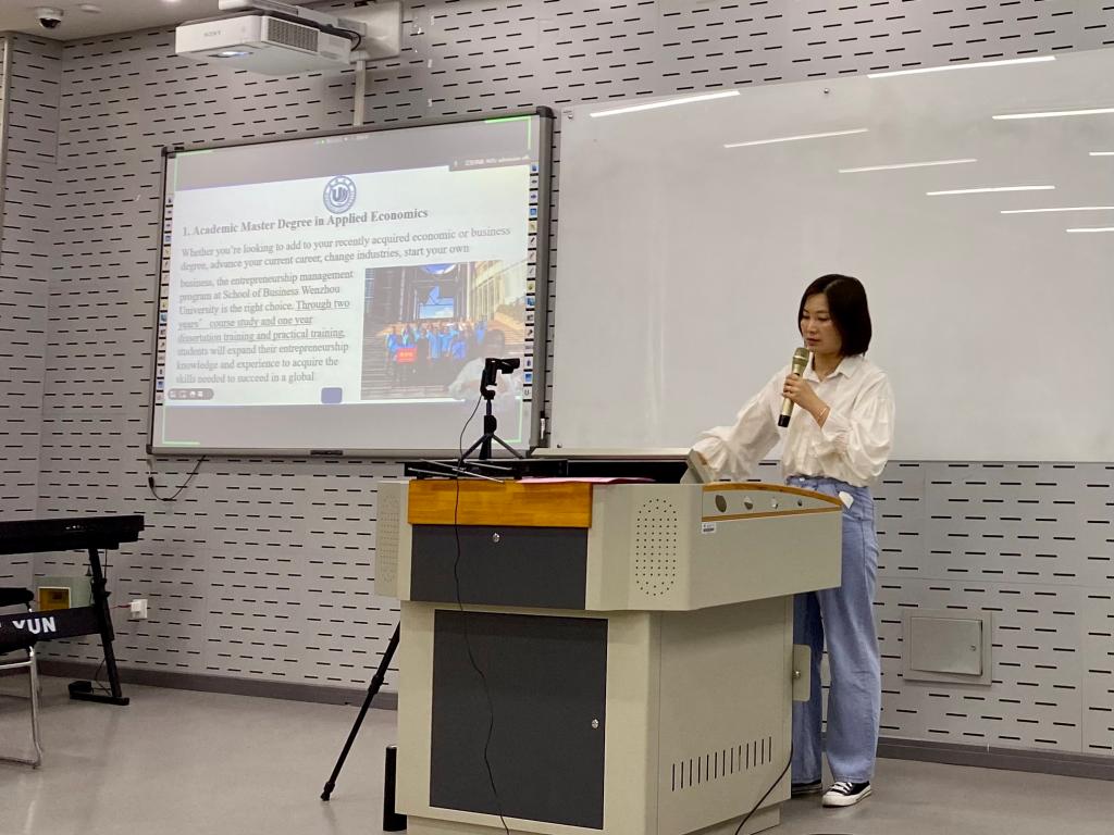 胡杰和许铮铮老师等老师应邀参会并现场详细介绍了悉心准备的项目信息。 参会人员们仔细聆听了老师们的介绍,对各自意向申报的硕士专业有了更直观的认识。