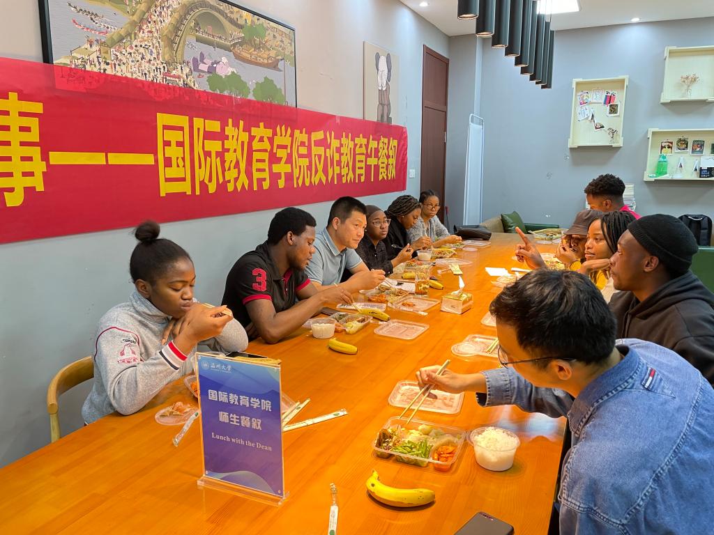 保卫处处长孙安梭与9位国际学生代表面对面交谈,并解答学生五楼自拍校园安全的疑问。