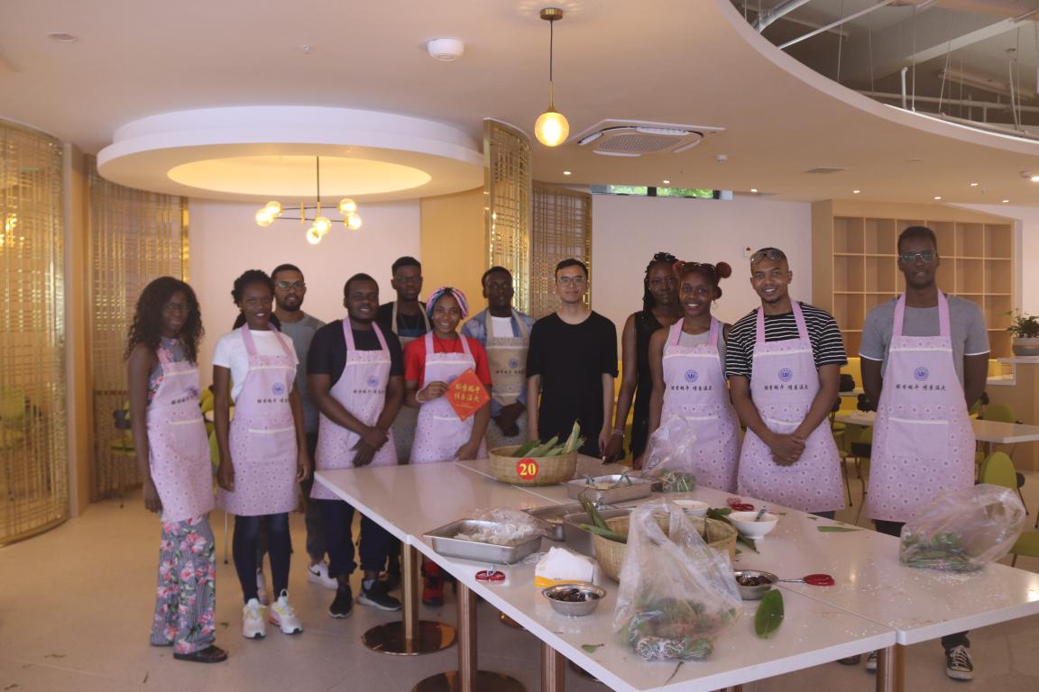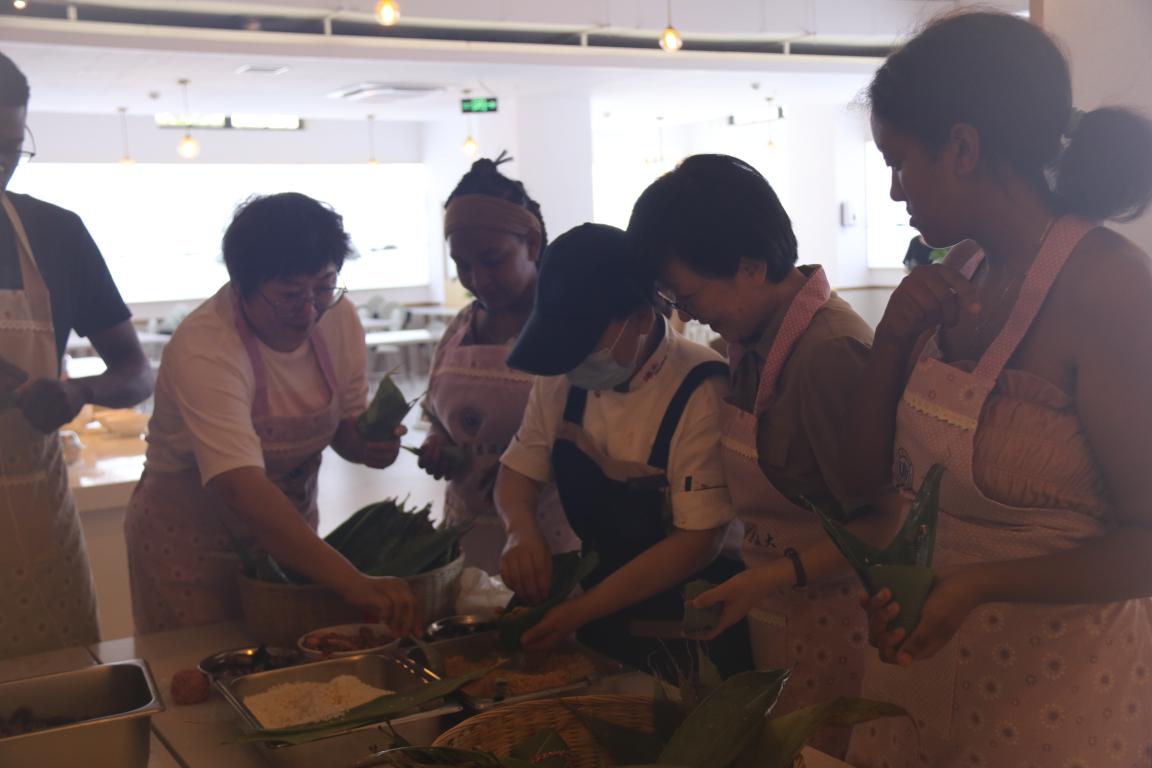 (留管部)于6月9日下午组织来自尼日利亚、埃塞俄比亚、加纳等国的10余名留学生前往学校教工餐厅学习包粽子,体验端午传统佳节。