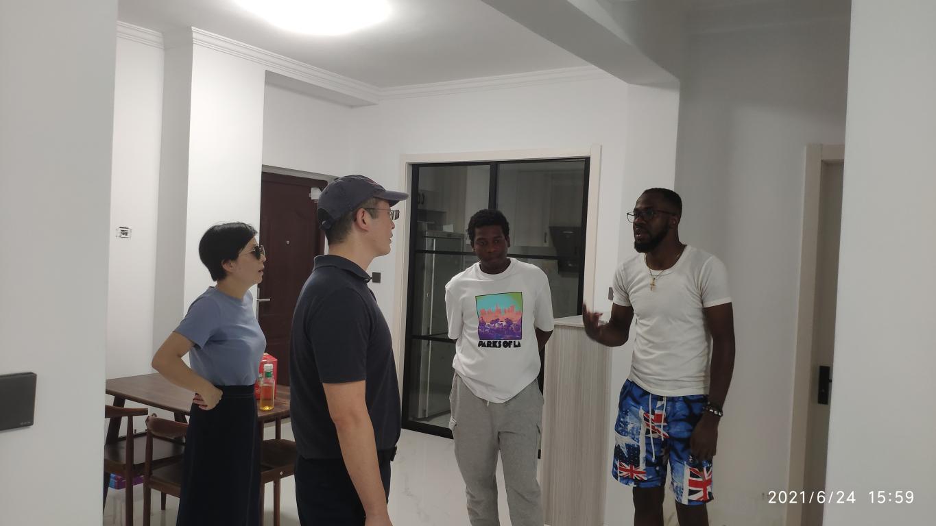 院长叶苗和书记林爱菊分两组带队赴校外住宿走访。每到一户校外学生住宿地,叶苗院长和林爱菊书记都细细叮嘱留学生要加强安全防范意识,注意防火、防盗;继续做好新冠肺炎疫情常态化防护;详细询问留学生的学习情况、学业进展情况、生活情况等。要求他们在居住地不聚众喧哗、不干扰邻居;不经商或从事其他经营性活动;不进行传教活动等。鼓励留学生提升个人学习能力,学好中文,了解中国文化,做中外友好交流的使者,为促进各国人民民心相通发挥积极作用。要学会自我管理,如有困难一定要及时联系五楼自拍