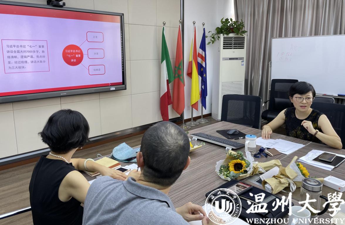 党总支书记林爱菊以《以史为鉴、开创未来的行动指南——深入学习领会习近平总书记“七一”重要讲话》为题作了专题报告、会议由教工党支部书记方建晓主持,五楼自拍