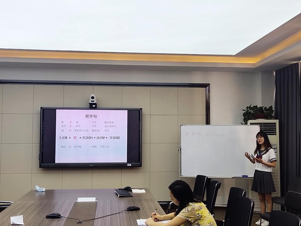 模拟教学技能竞赛。本次竞赛由汉硕点专业负责人涂海强副教授主持,与郑娟曼教授和周静涵老师共同担任评委。