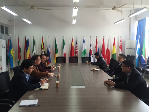 2017年2月20日上午,新学期正式上课第一天,校长李校堃教授在党校办主任王定福的陪同下,第一站走访了国际合作五楼自拍